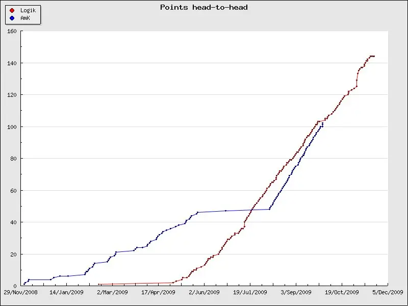 Head-to-head currently graphs your score v/s that of some other BB user. Here’s an example for how Logik stacks up v/s AmK: Check it live!